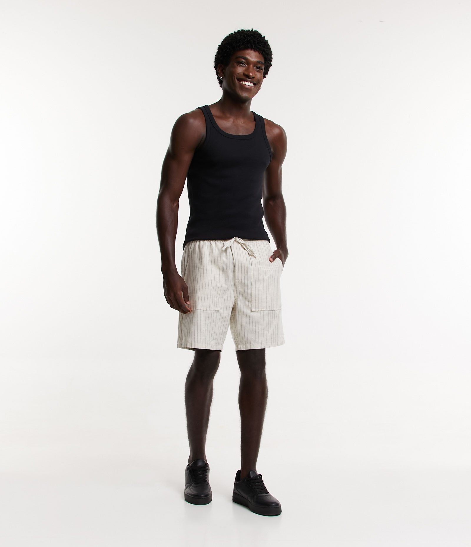 Bermudas de lino con rayas beige texturizadas de Renner - Experimenta una comodidad sin igual, una calidad excepcional y un estilo atemporal en cada pieza.