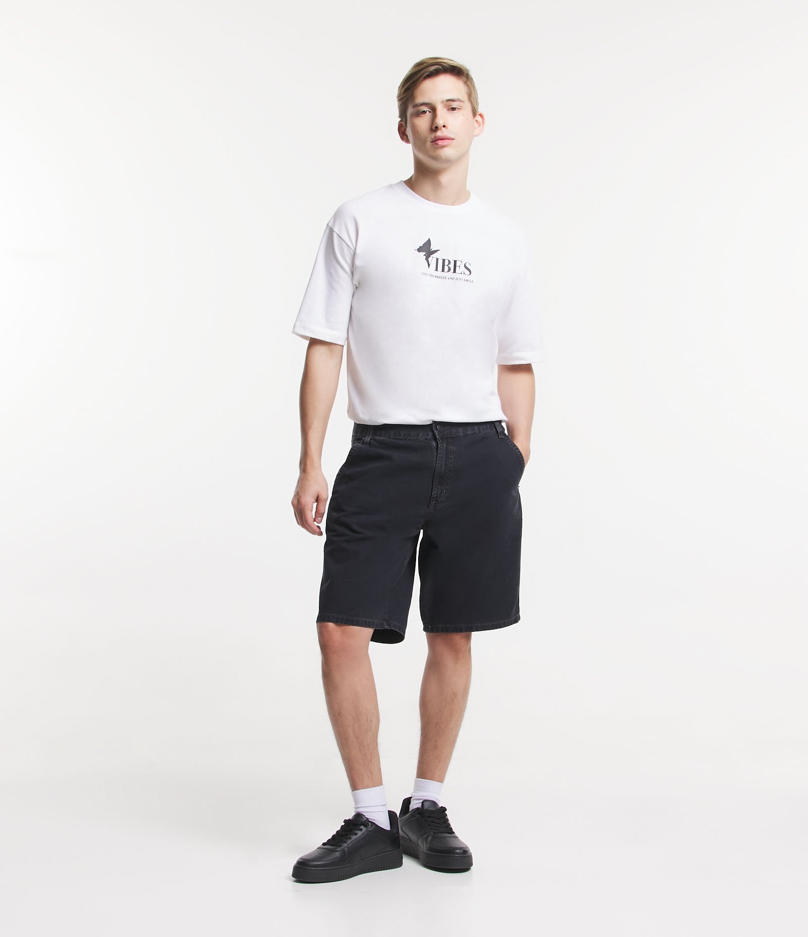 Pantalones cortos rectos de sarga holgada con bolsillos en gris carbón