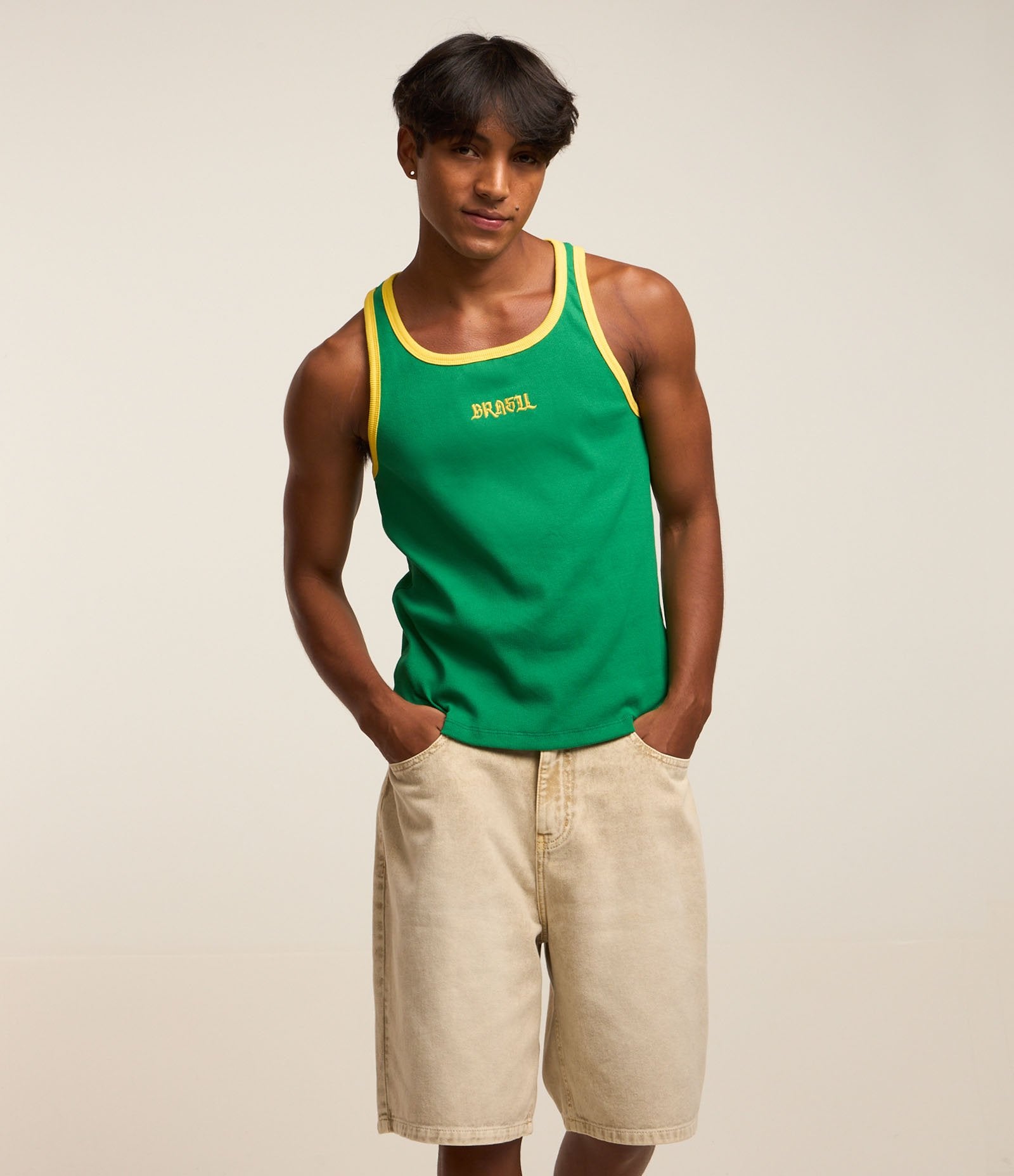 Camiseta de tirantes regular de algodón con diseño de Brasil bordado en verde