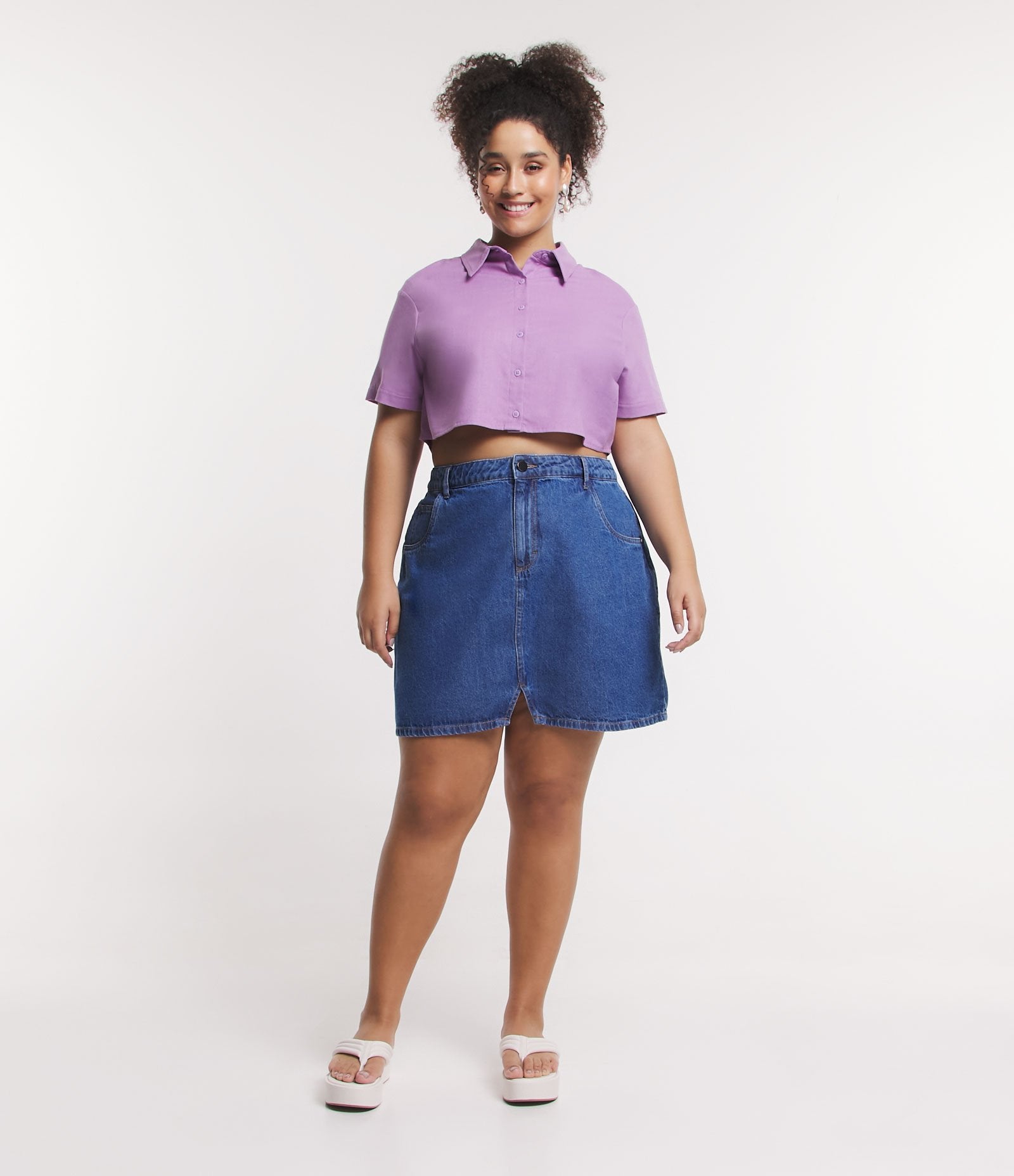 La minifalda vaquera Ashua Curve & Plus Size Azul con bolsillos y abertura está confeccionada para abrazar y realzar tus curvas con estilo y confianza. Ideal para cualquier ocasión, esta prenda combina a la perfección comodidad y elegancia en un favorecedor diseño que realza tu silueta.