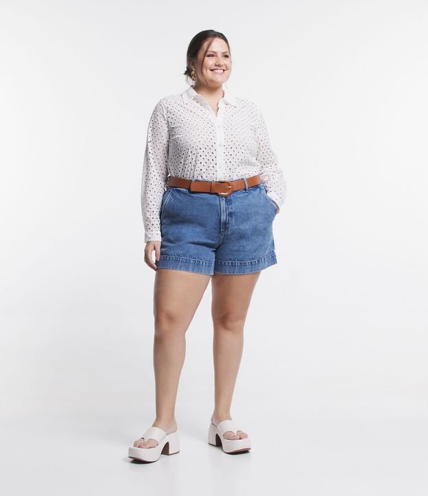 Vaquero Corto con Bolsillos y Dobladillo Ancho, Curvas y Tallas Grandes, Azul