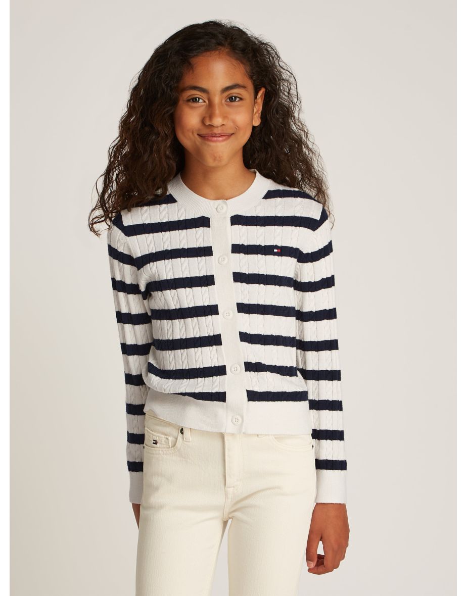 El Mini cárdigan de punto por cable para niña en multicolor de Tommy Hilfiger es la opción ideal para conjuntos informales y prendas de diario.