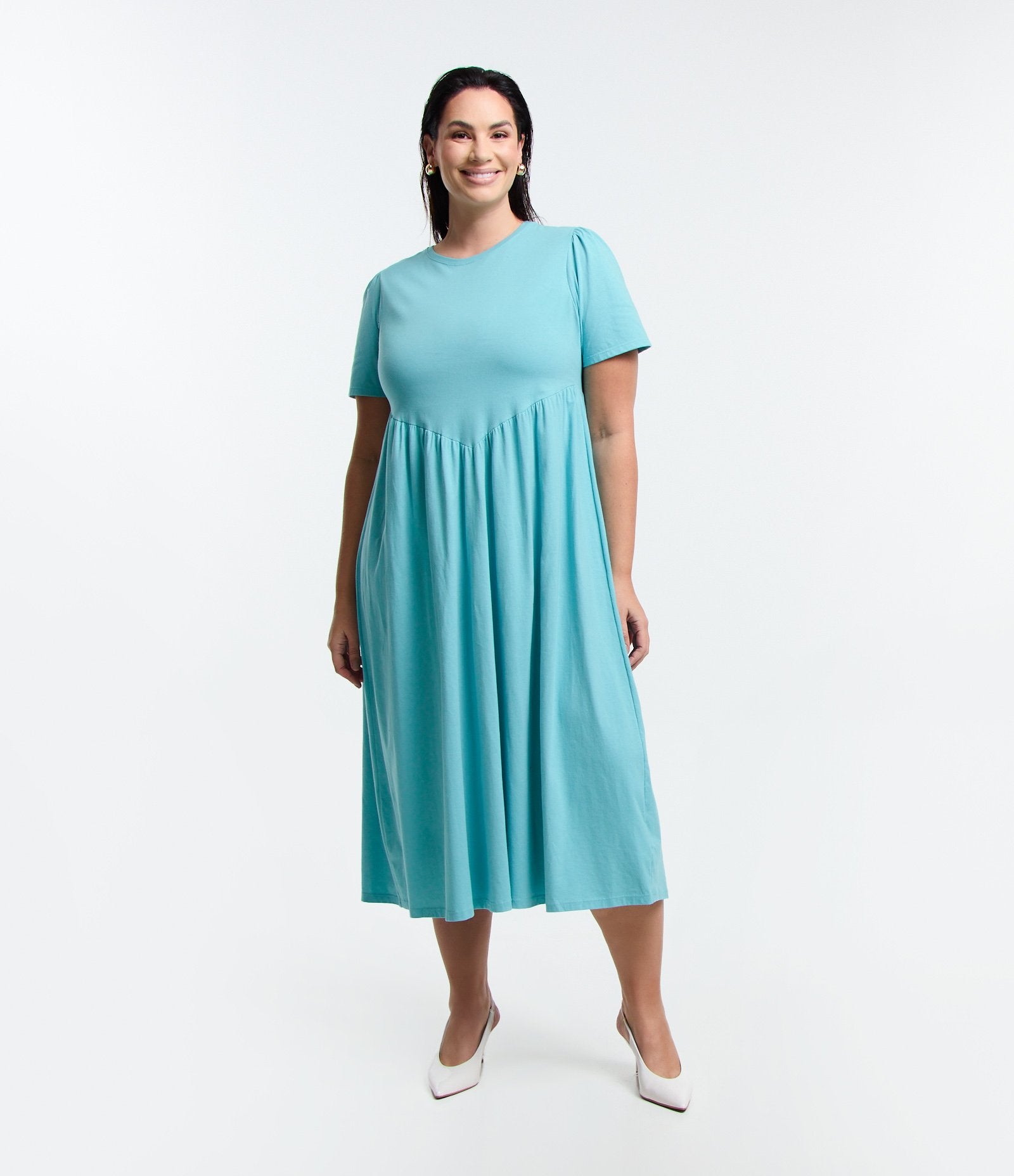 El vestido azul claro Curve & Plus Size Midi Dress with Puff Sleeves de Ashua Curve está confeccionado para celebrar las curvas con estilo y confianza. Ideal para cualquier ocasión, este vestido combina a la perfección comodidad y elegancia en un diseño favorecedor.