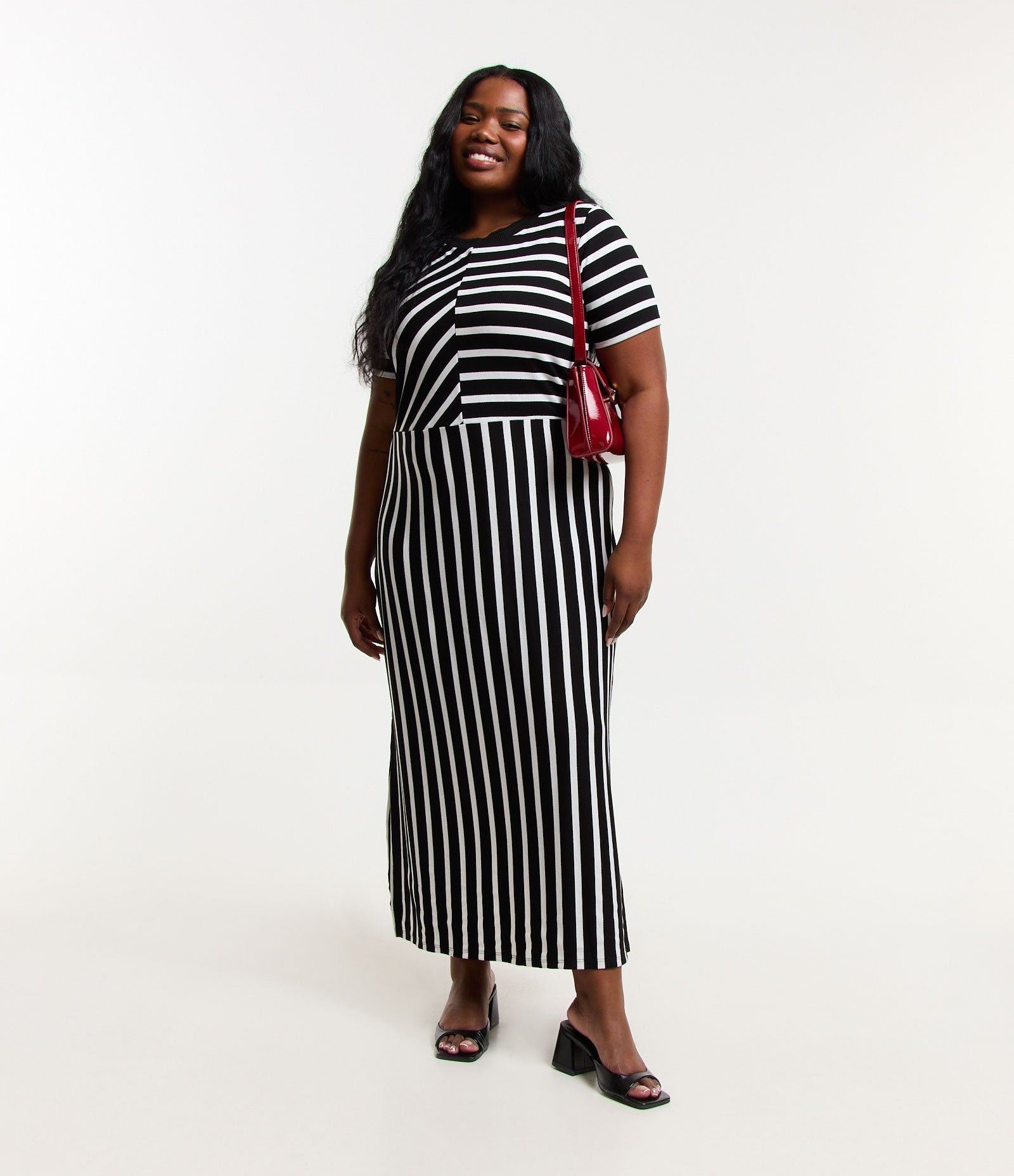 Vestido midi de crepé a rayas Curve & Plus Size Negro/Blanco