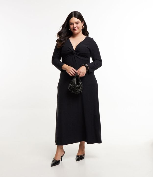 Vestido Midi de punto texturizado negro con busto retorcido - Tallas grandes y curvas