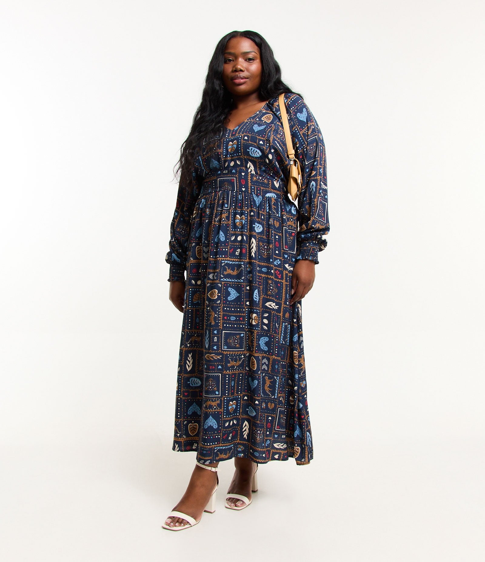 Vestido azul Curve & Plus Size Midi de viscosa estampada con leopardos y hojas