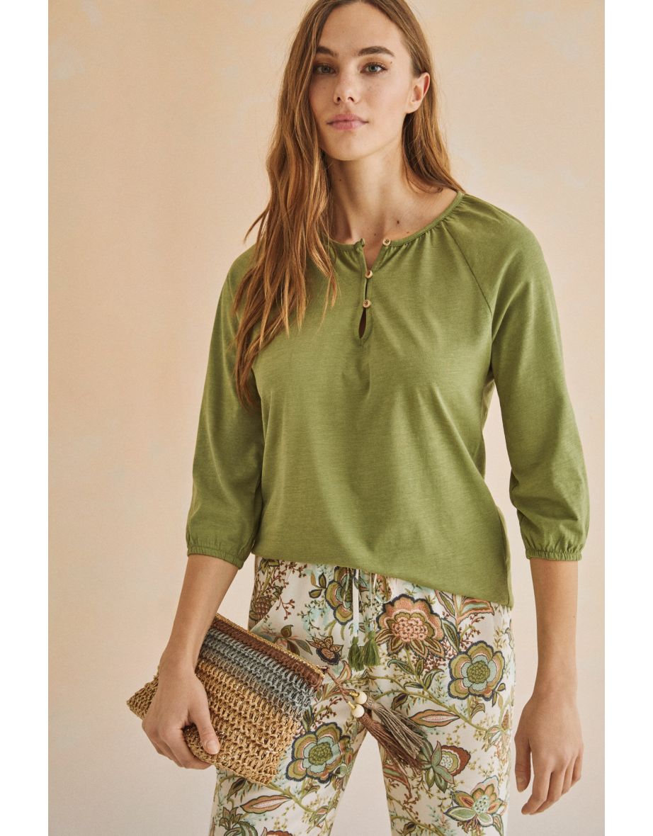 La camiseta verde de manga larga 100% algodón de Women'Secret es una opción ideal para crear looks de diario chic y sin esfuerzo.