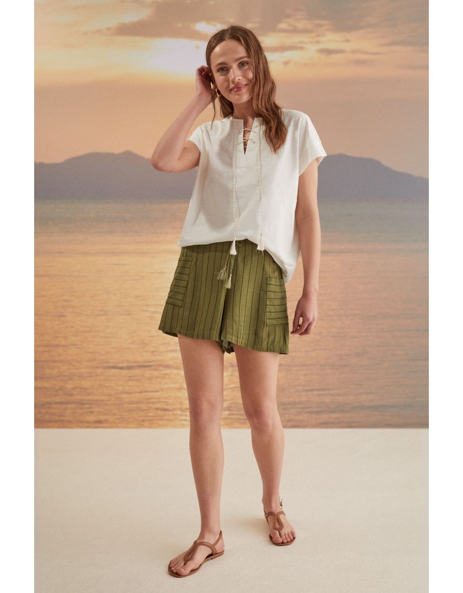 Top marfil 100% algodón con escote de encaje
