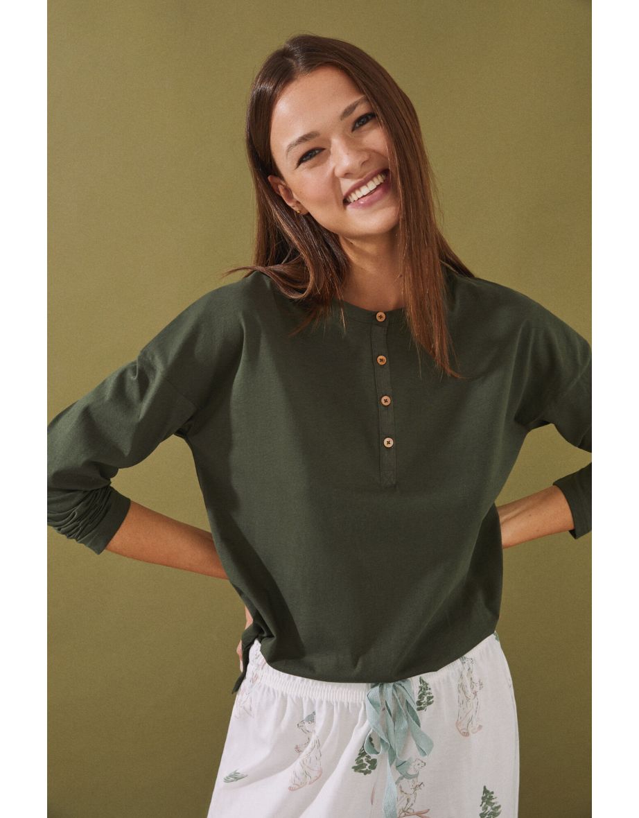 La CAMISETA DE MANGAS LARGAS de Women'Secret es la opción ideal para crear conjuntos de diario chic y sin esfuerzo. Perfecta para looks esenciales, esta prenda versátil combina a la perfección comodidad y estilo.
