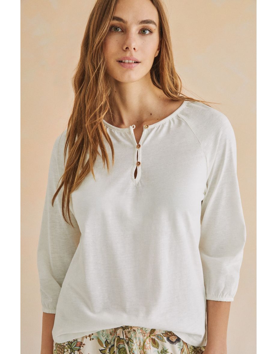 La camiseta blanca de manga larga 100% algodón de Women'Secret es una opción ideal para crear looks esenciales y para el día a día.