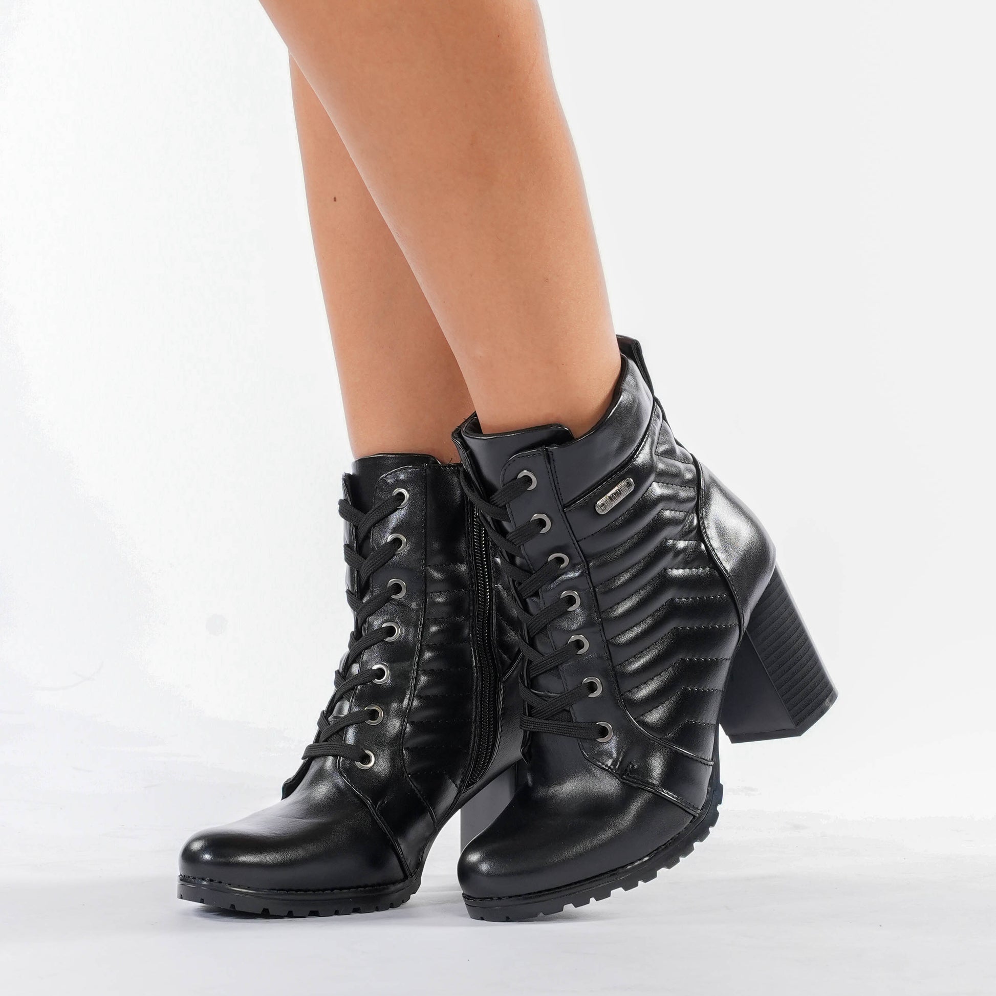 Stivali da combattimento neri con tacco alto da donna di Mooncity
