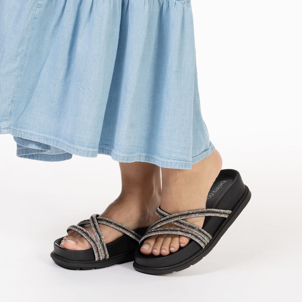 Sandali Beira Rio neri da donna con cinturini e brillanti