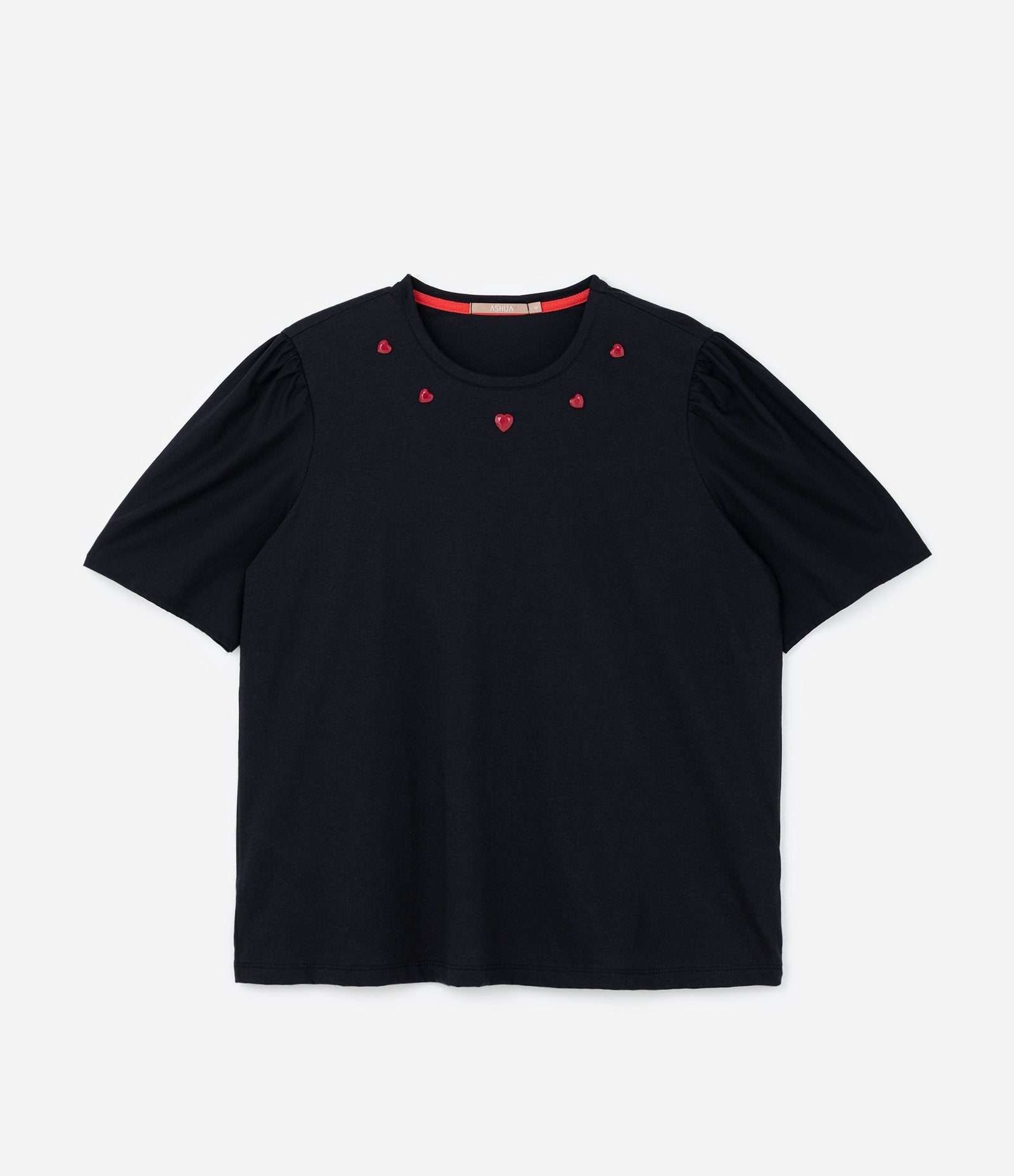 Maglietta nera con scollo a cuore e maniche a palloncino Curve e taglie forti