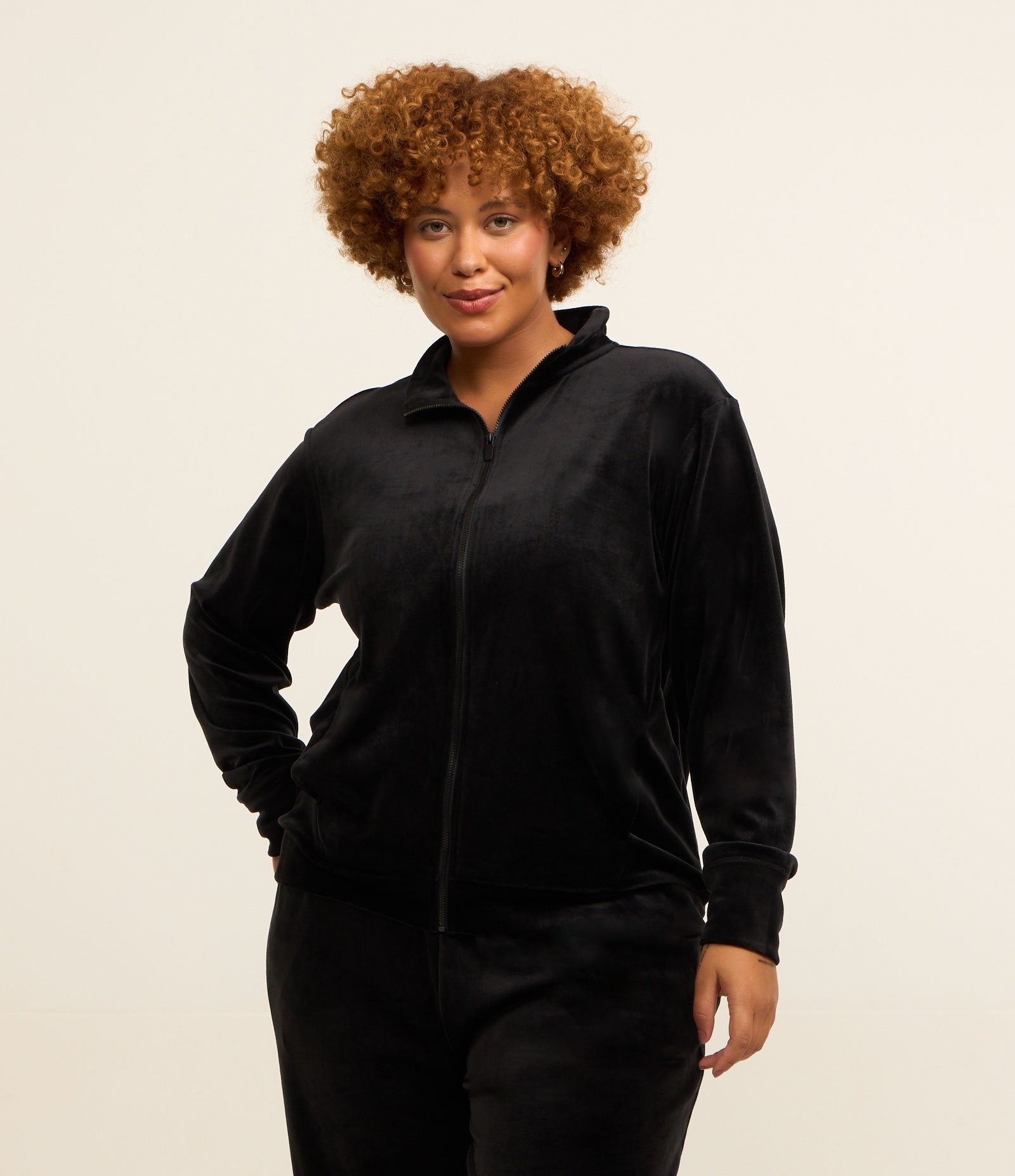 Giacca sportiva nera in felpa a collo alto Curve e taglie forti