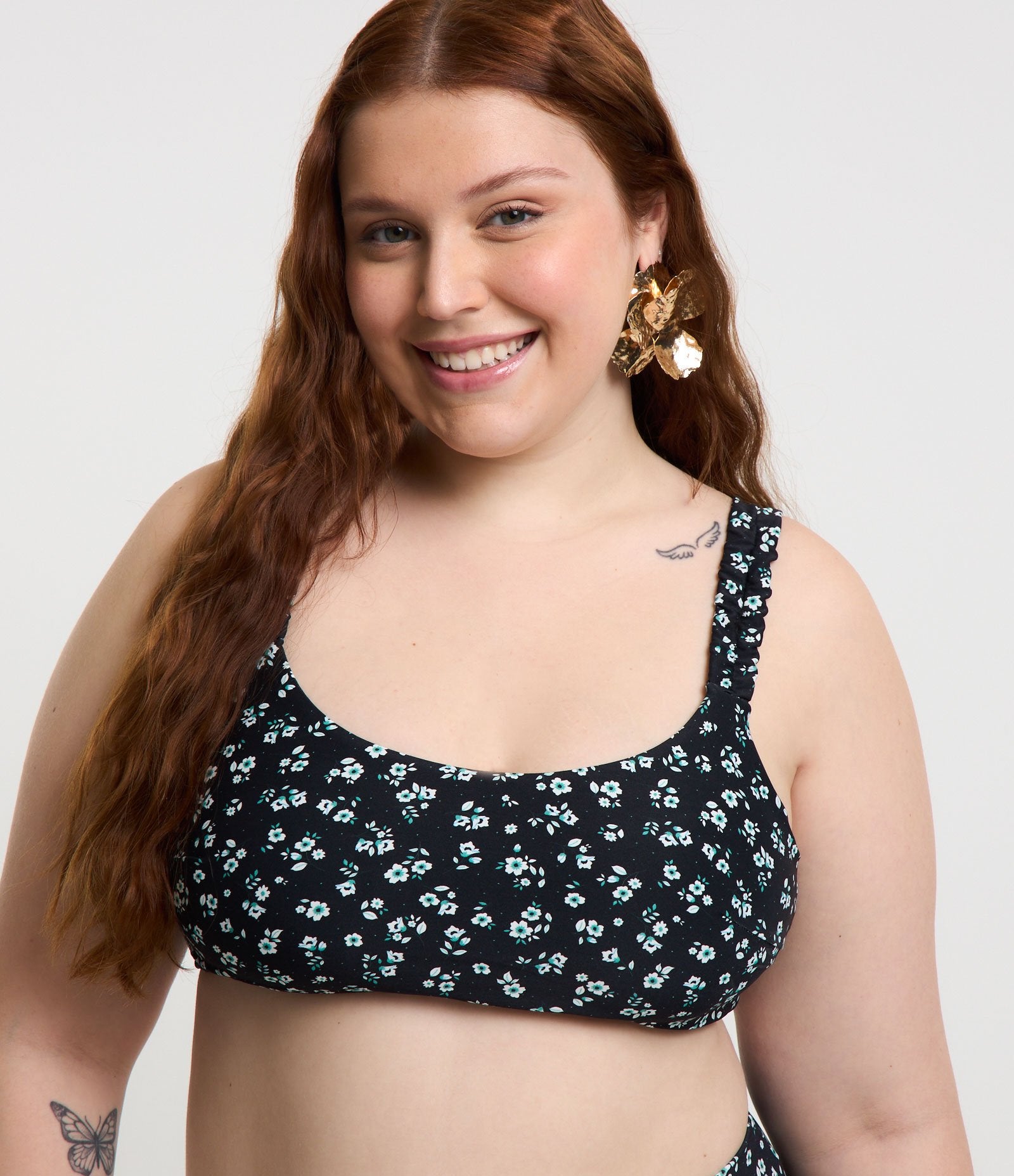 Top bikini dritto con stampa floreale Liberty, nero, Curve & Plus Size