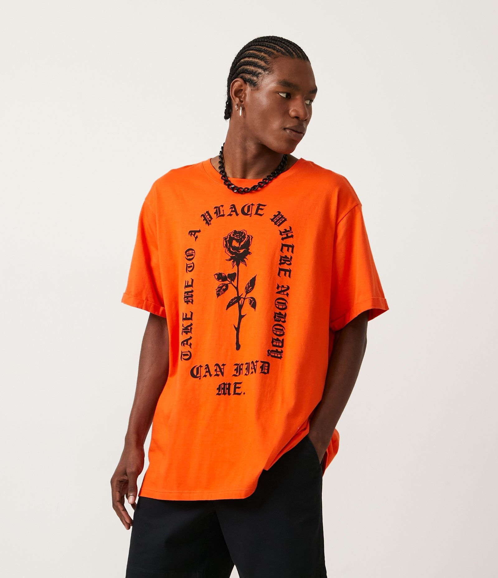 Maglietta a maniche corte in cotone con stampa arancione "Take Me" in rosa