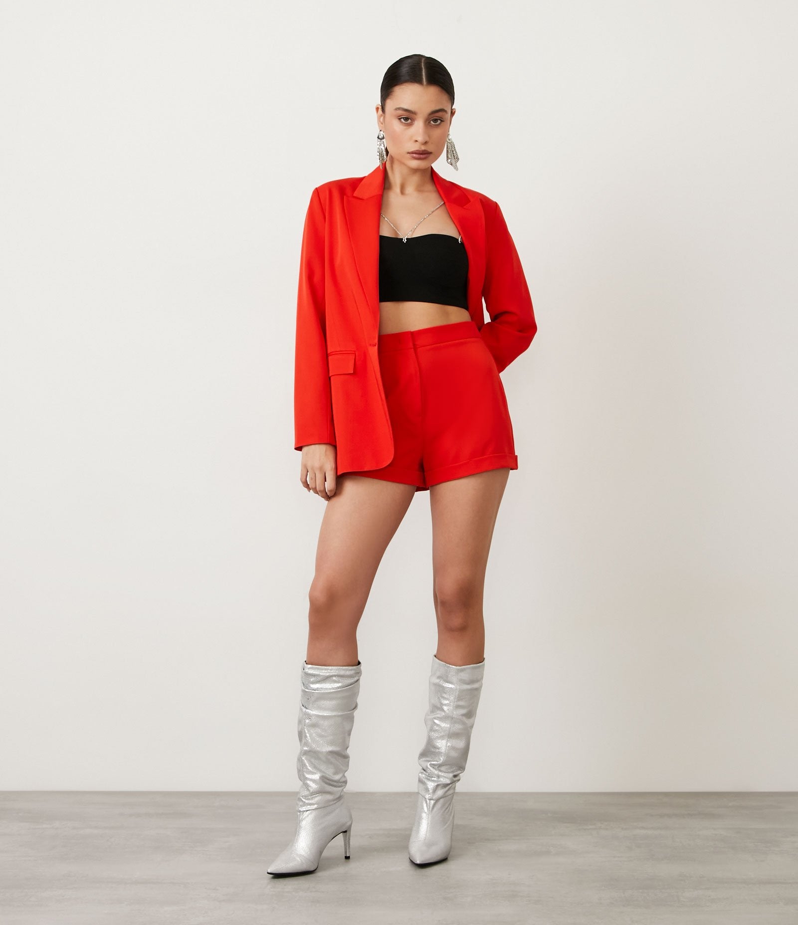 Pantaloncini sartoriali in crêpe rosso con orlo a polsino di Blue Steel - Prova il comfort, la qualità e lo stile in ogni capo.
