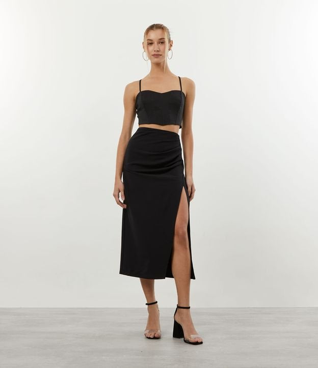 Nuova gonna midi in crêpe con ruche e spacco nero di Blue Steel - Prova un comfort, una qualità e uno stile senza pari in ogni capo.