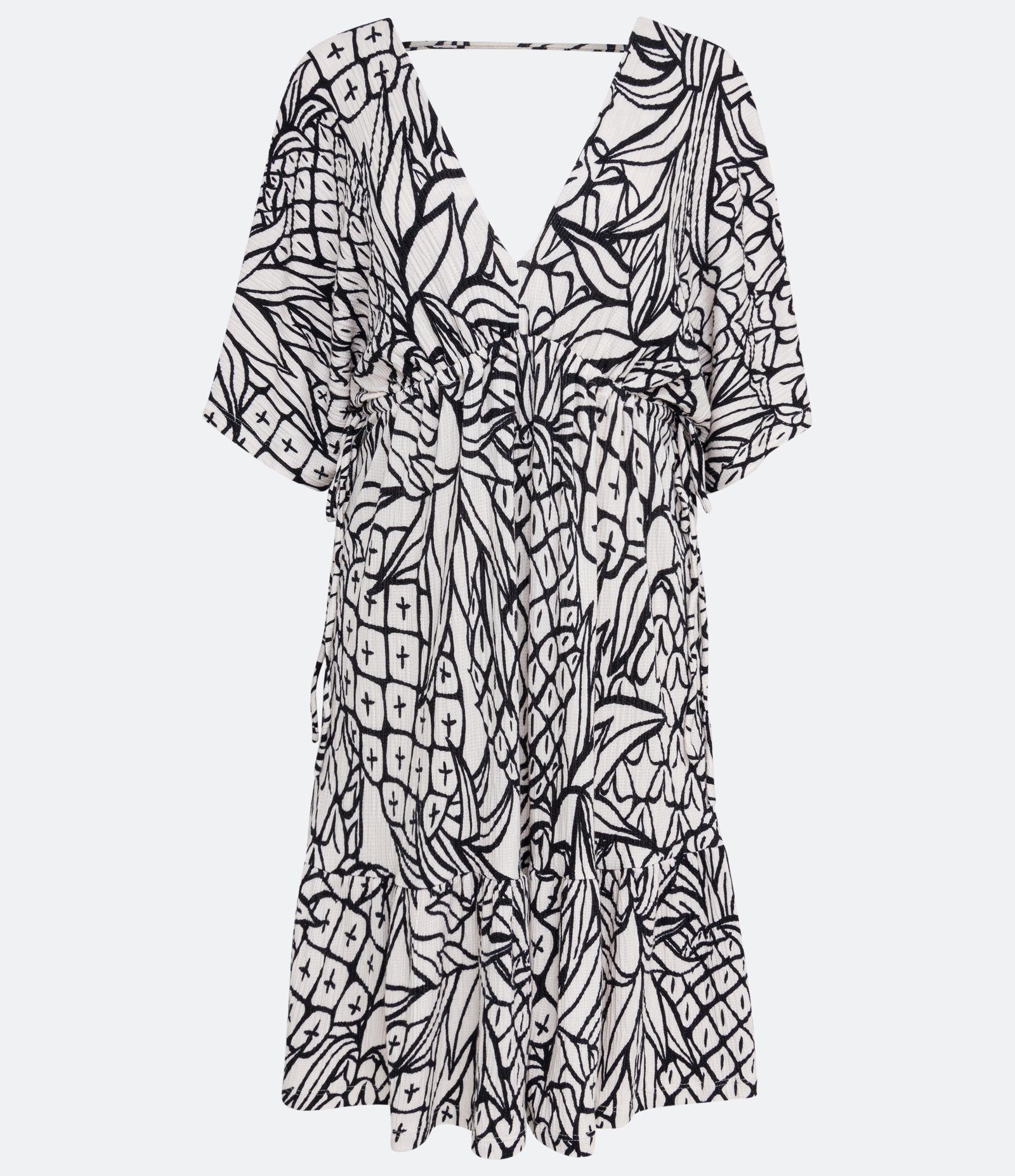 Vestito corto in maglia testurizzata con maniche corte e stampa ananas bianco neve