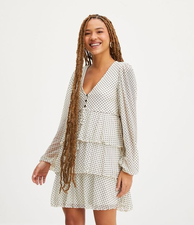 Abito corto in tulle con balze a strati e stampa a pois bianco sporco di Blue Steel - Prova il comfort, la qualità e lo stile in ogni capo.