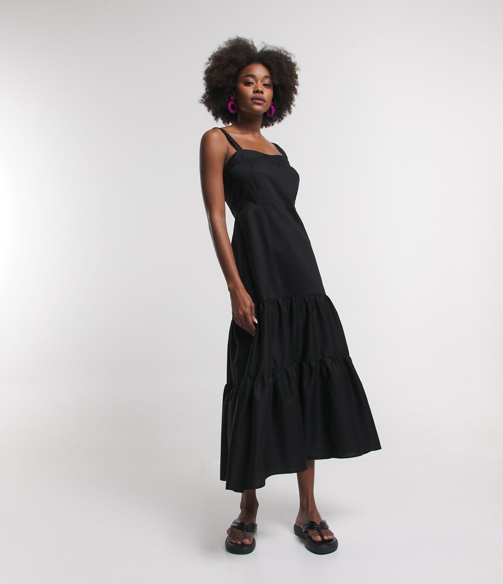 Abito lungo nero tricolore con orlo a pieghe di Blue Steel - Prova il comfort, la qualità e lo stile in ogni dettaglio.