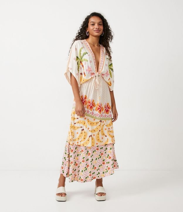 Nuovo abito midi in viscosa con stampa pixel tropicale rosa