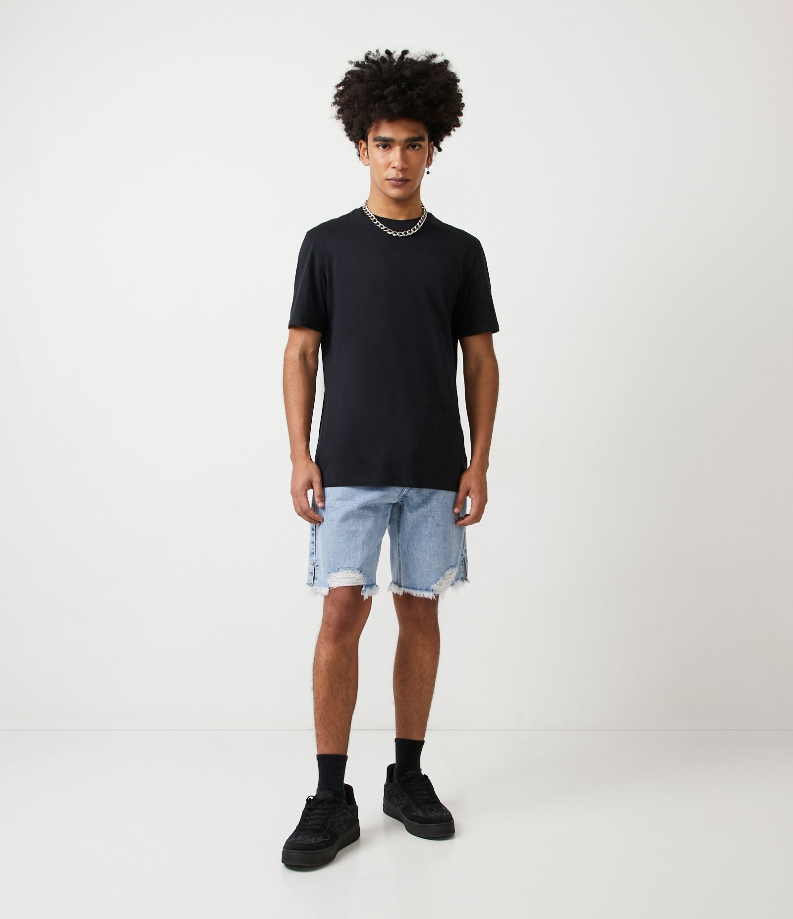 Pantaloncini in denim slim fit con dettagli distressed in blu di Blue Steel - Prova la miscela perfetta di comfort, qualità e stile con ogni capo.