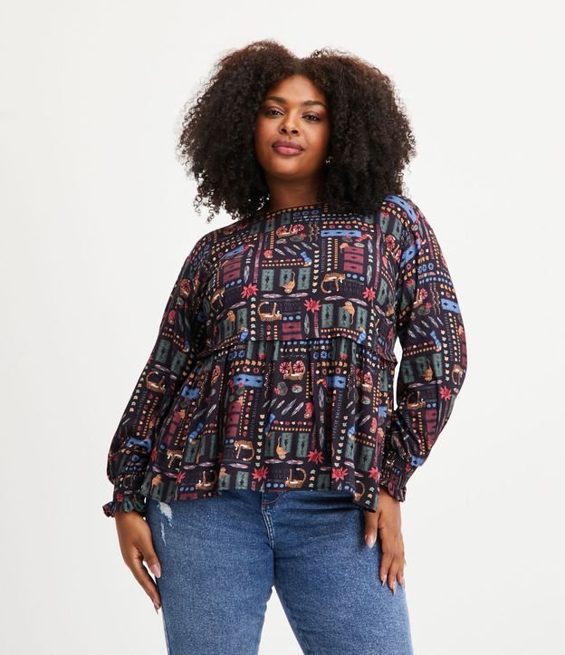 La Blusa Bata in Viscosa con Stampa Foresta per Curve & Plus Size in Nero/Blu di Ashua Curve è realizzata per celebrare le curve con stile e sicurezza. Ideale per ogni occasione, questo capo combina perfettamente comfort ed eleganza in un design che non passa inosservato.