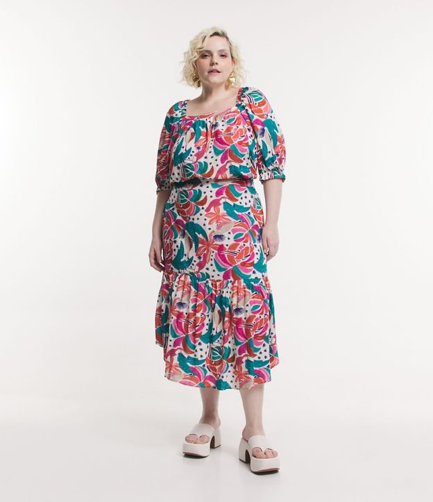 Camicetta in viscosa con stampa tropicale in taglie forti e taglie forti, multicolore