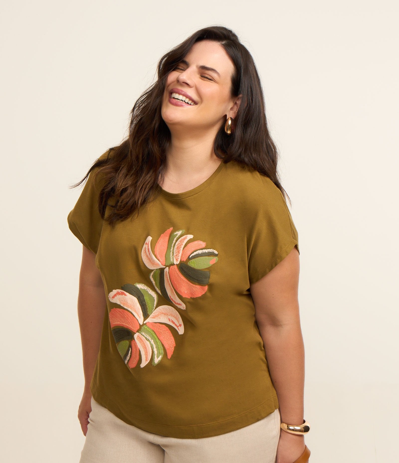 Camicetta verde Curve e taglie forti con motivo ricamato a fogliame