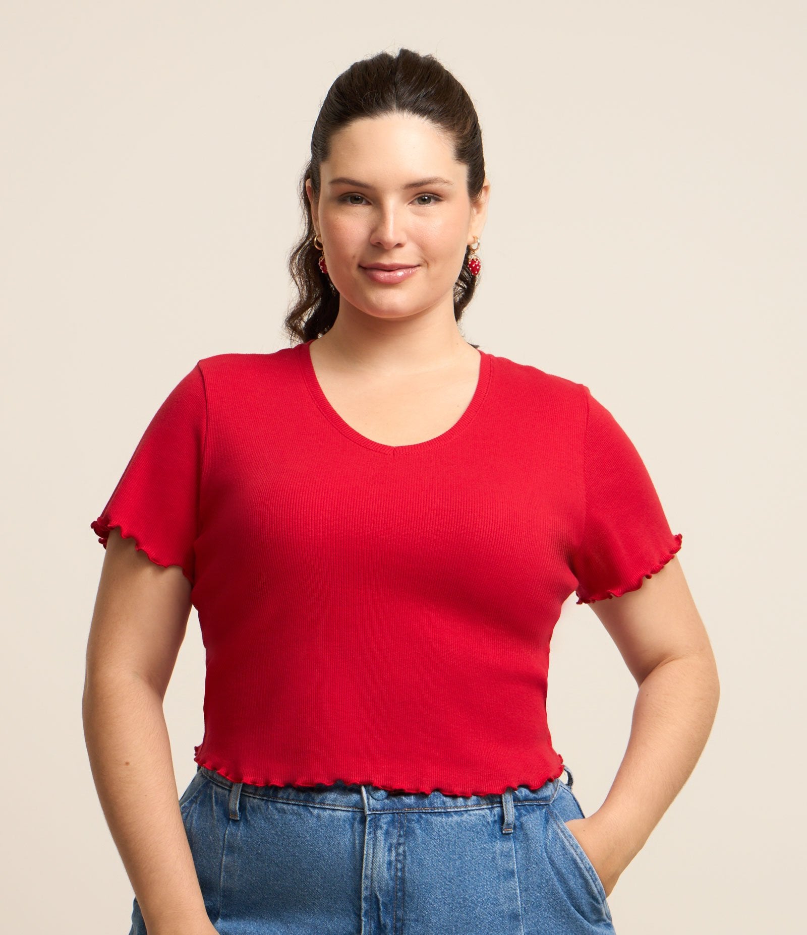 Camicetta rossa con bordi a coste - Curve & Plus Size