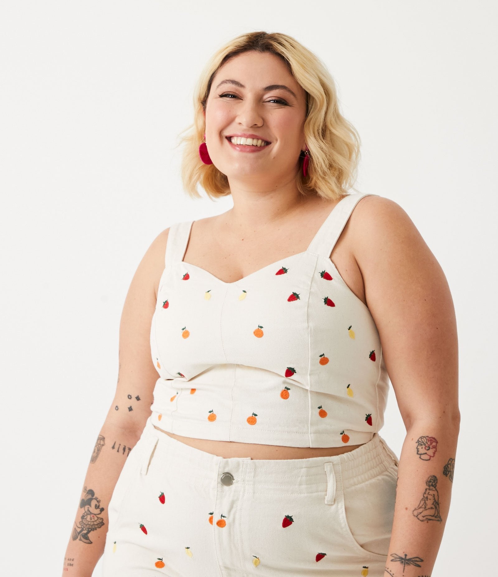La blusa cropped off white in twill con frutti ricamati di Ashua Curve è realizzata per celebrare le curve con stile e sicurezza. Ideale per qualsiasi occasione, questo capo combina perfettamente comfort ed eleganza in un design lusinghiero.