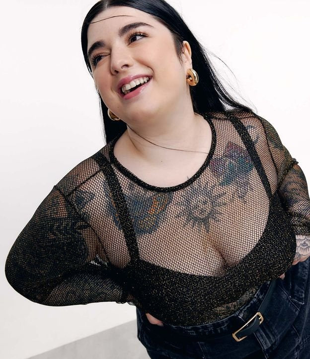 Camicetta in rete con filo metallico nero/oro - Curve e taglie forti