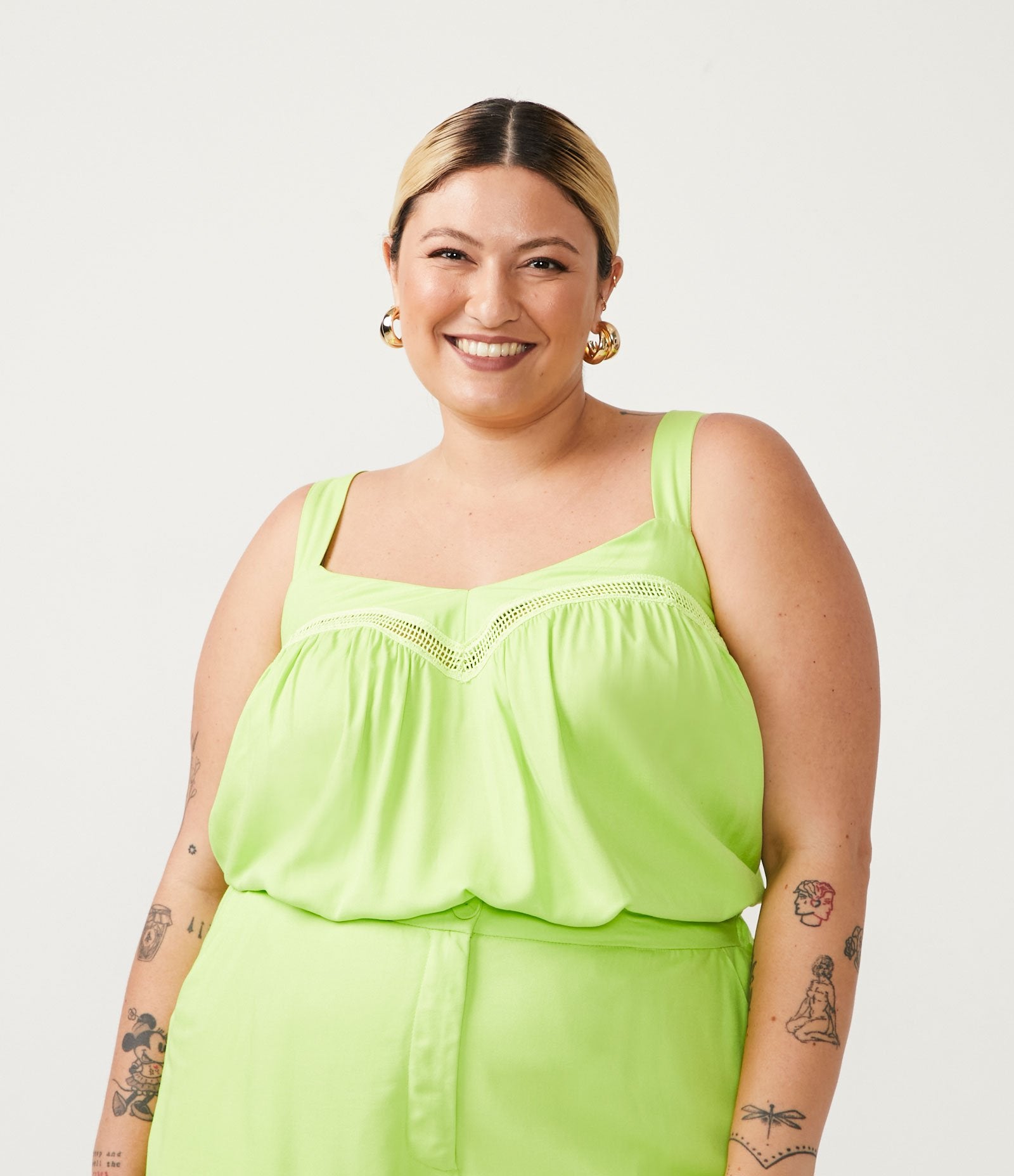 La camicetta Ashua Curve con spalline in viscosa e dettaglio scollatura - Curve & Plus Size in verde è realizzata per celebrare le curve con stile e sicurezza. Ideale per ogni occasione, questo capo combina perfettamente comfort ed eleganza in un design lusinghiero.