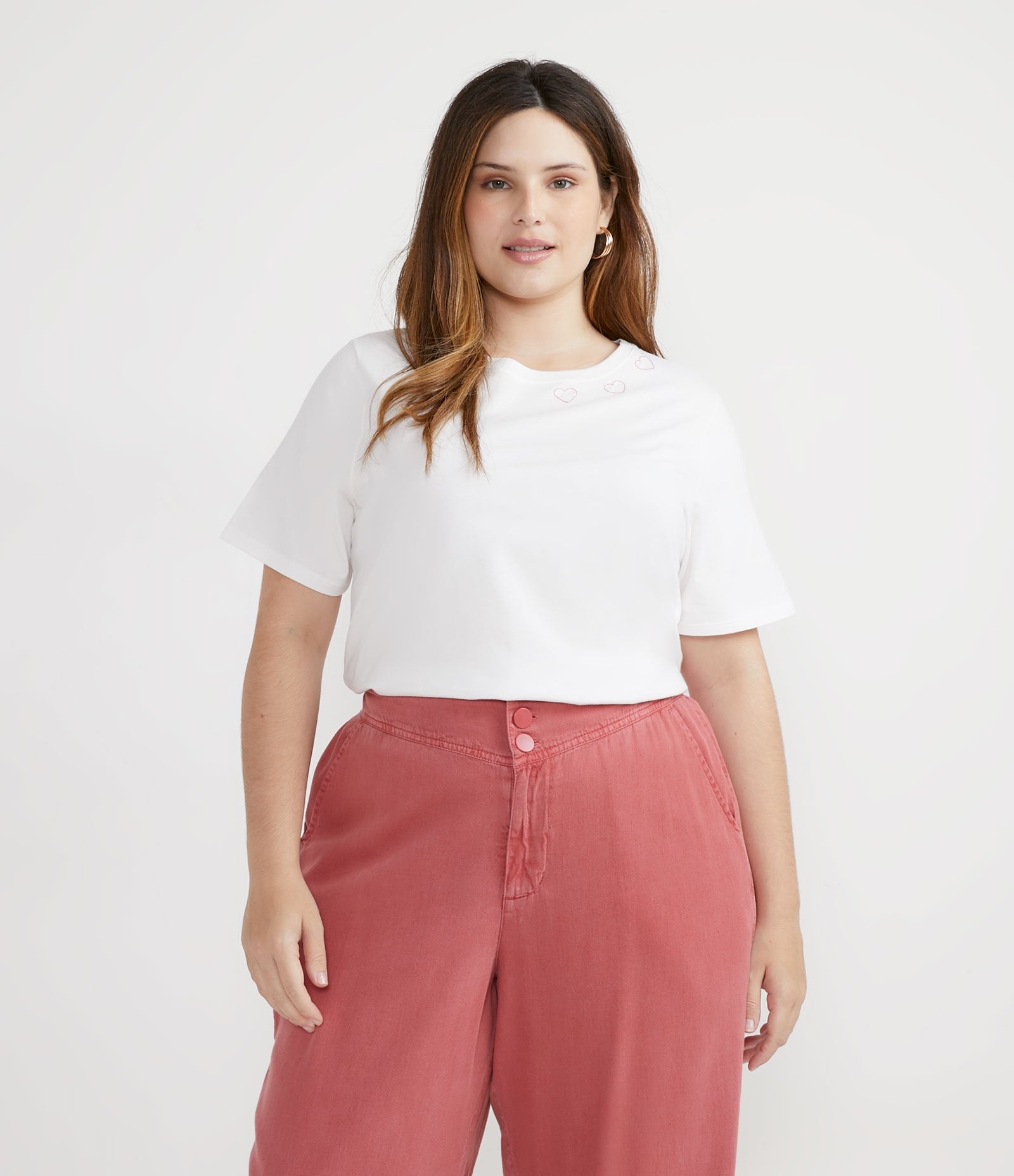 Camicetta in cotone bianco con collo a cuore - Curve e taglie forti