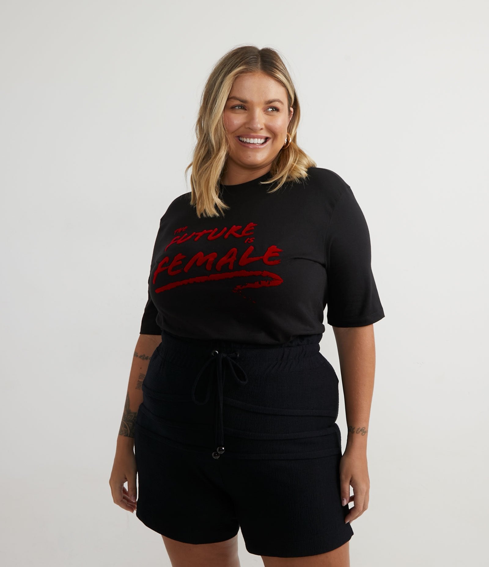 La camicetta in cotone con grafica "The Future Is Female" in nero di Ashua Curve è realizzata per celebrare e abbracciare le curve con stile e sicurezza. Perfetto per ogni occasione, questo capo combina perfettamente comfort ed eleganza in un design lusinghiero e su misura per Curve & Plus Size.