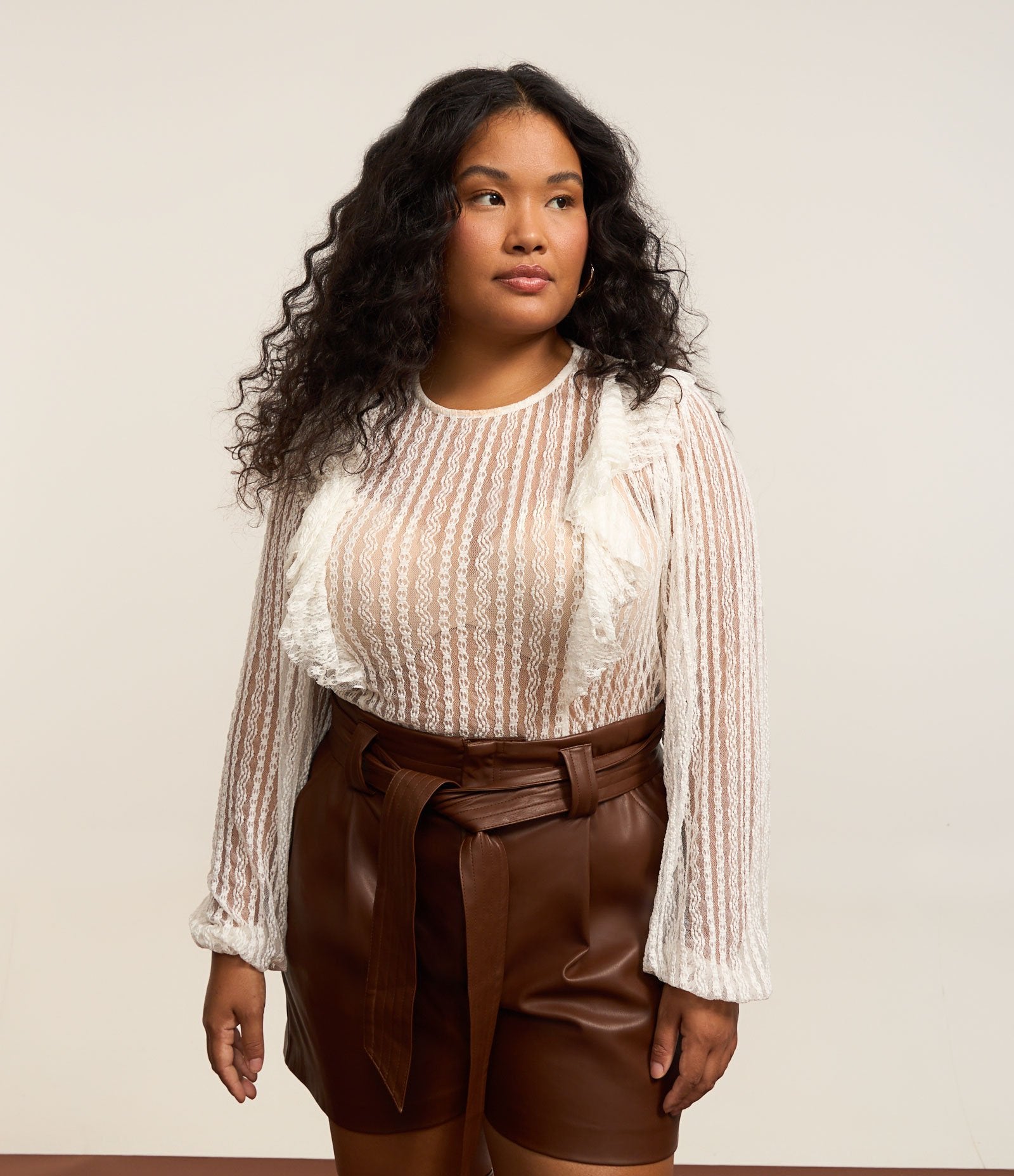 La camicetta Ashua Curve Laise con volant in Curve & Plus Size Brown è realizzata per celebrare le tue curve con stile e sicurezza. Ideale per ogni occasione, questo capo fonde perfettamente comfort ed eleganza in un unico design lusinghiero.