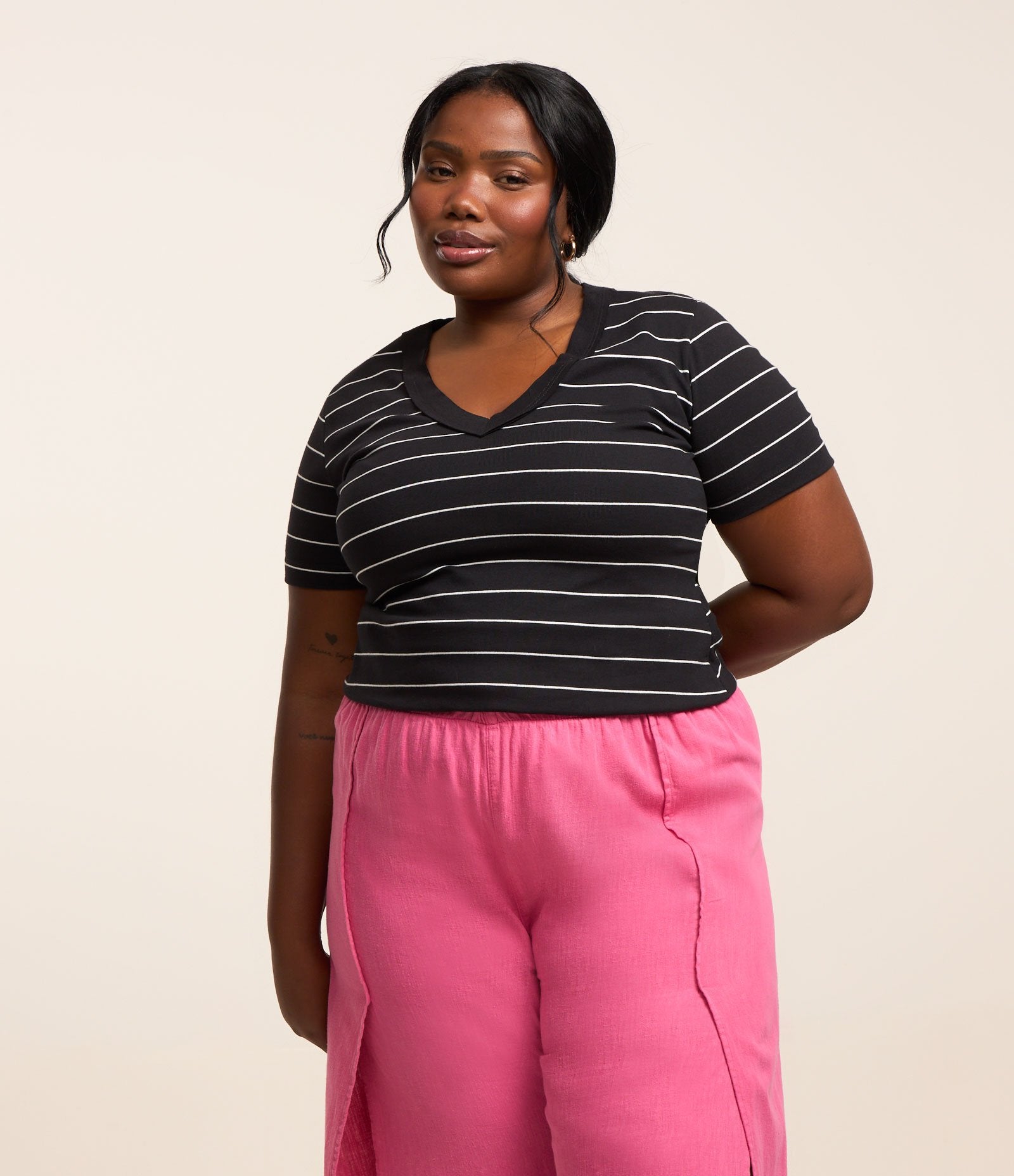 Camicetta a righe con scollo a V in taglie forti - Nero