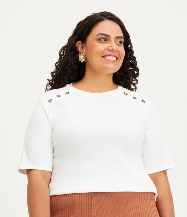 Camicetta bianca in suedine con cuori applicati - Curve e taglie forti