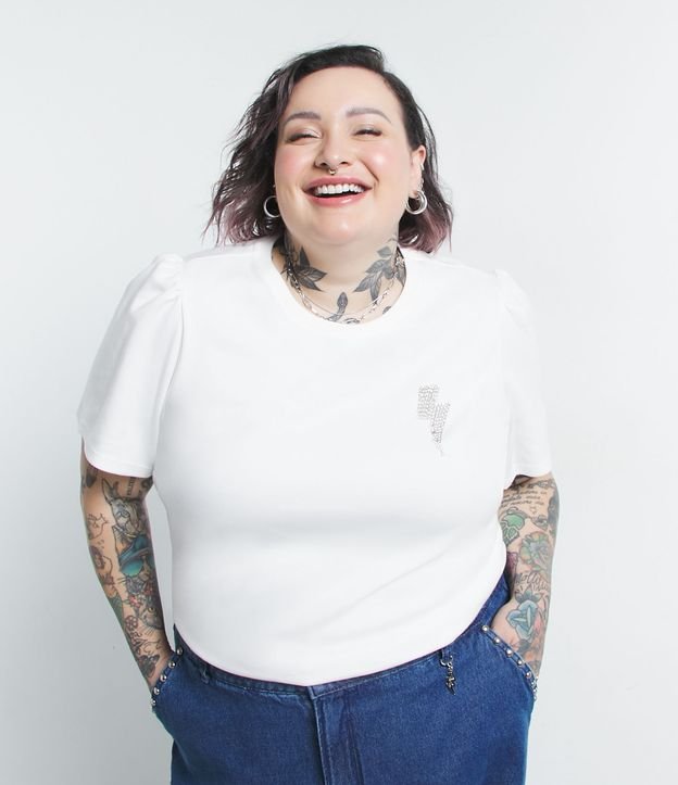 Camicetta Suedine con dettagli in strass, Curve e taglie forti, Collezione Jessica Lopes, Biancaneve