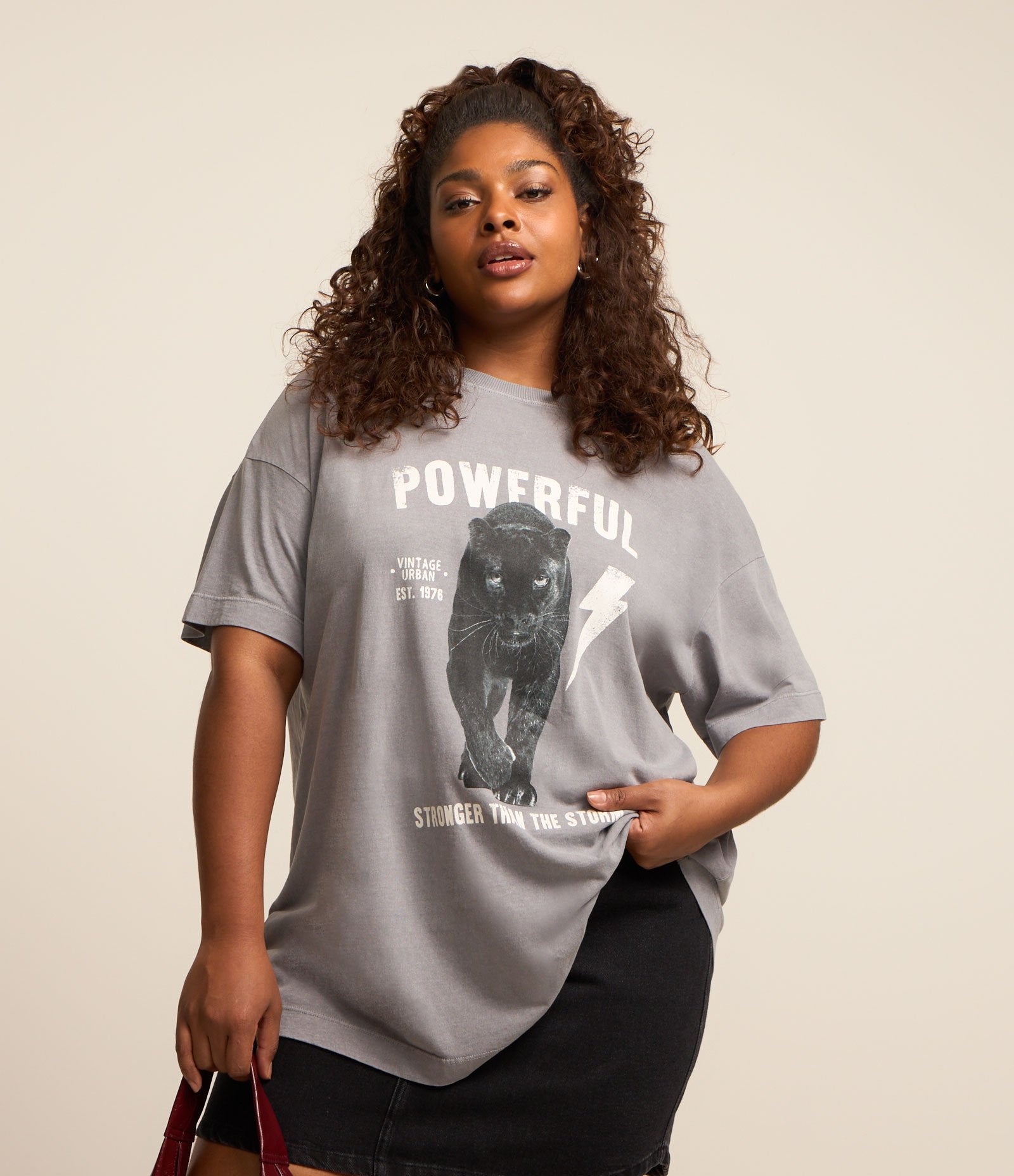 Camicetta con stampa pantera lavata - Taglie forti e taglie forti - Grigio