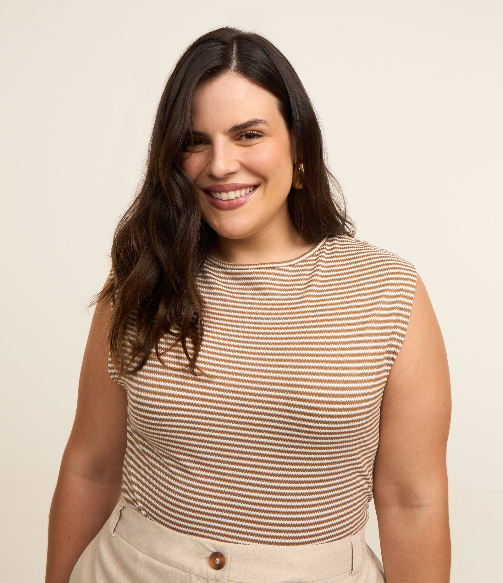 La blusa a righe con ruche laterali in Curve & Plus Size Caramello/Bianco di Ashua Curve è realizzata per valorizzare le tue curve con stile e sicurezza. Ideale per ogni occasione, questo capo combina perfettamente comfort ed eleganza in un design lusinghiero.