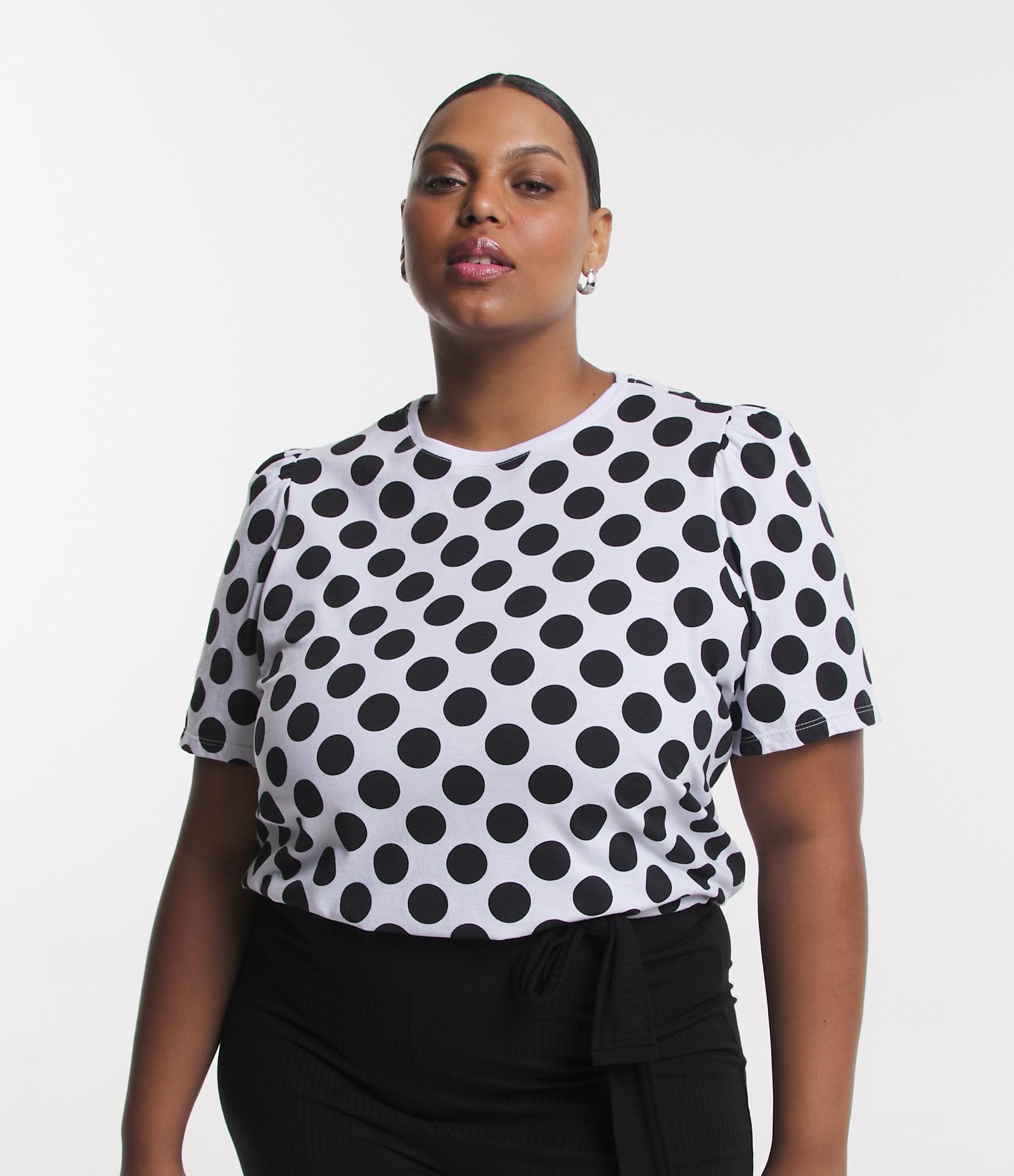 La blusa con maniche a sbuffo in maglia stampata a pois per Curve & Plus Size in bianco sporco di Ashua Curve è realizzata per celebrare le tue curve con stile e sicurezza. Ideale per ogni occasione, questo capo combina perfettamente comfort ed eleganza in un design lusinghiero.