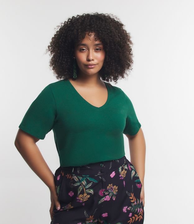Camicetta a maniche corte con scollo a V, Curve e taglie forti, verde