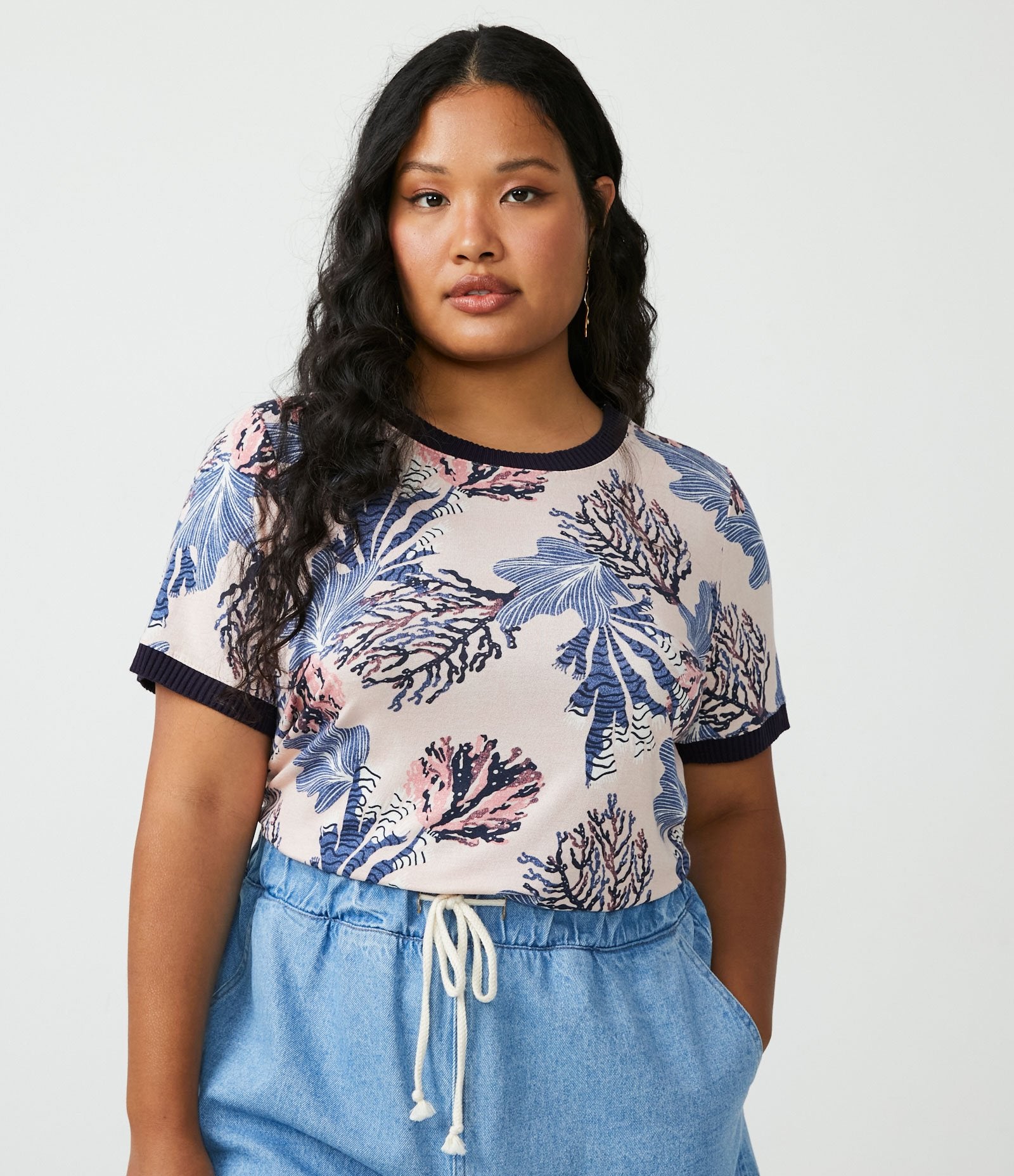 Camicetta in viscosa a maniche corte con stampa Under the Sea, Curve e taglie forti, blu