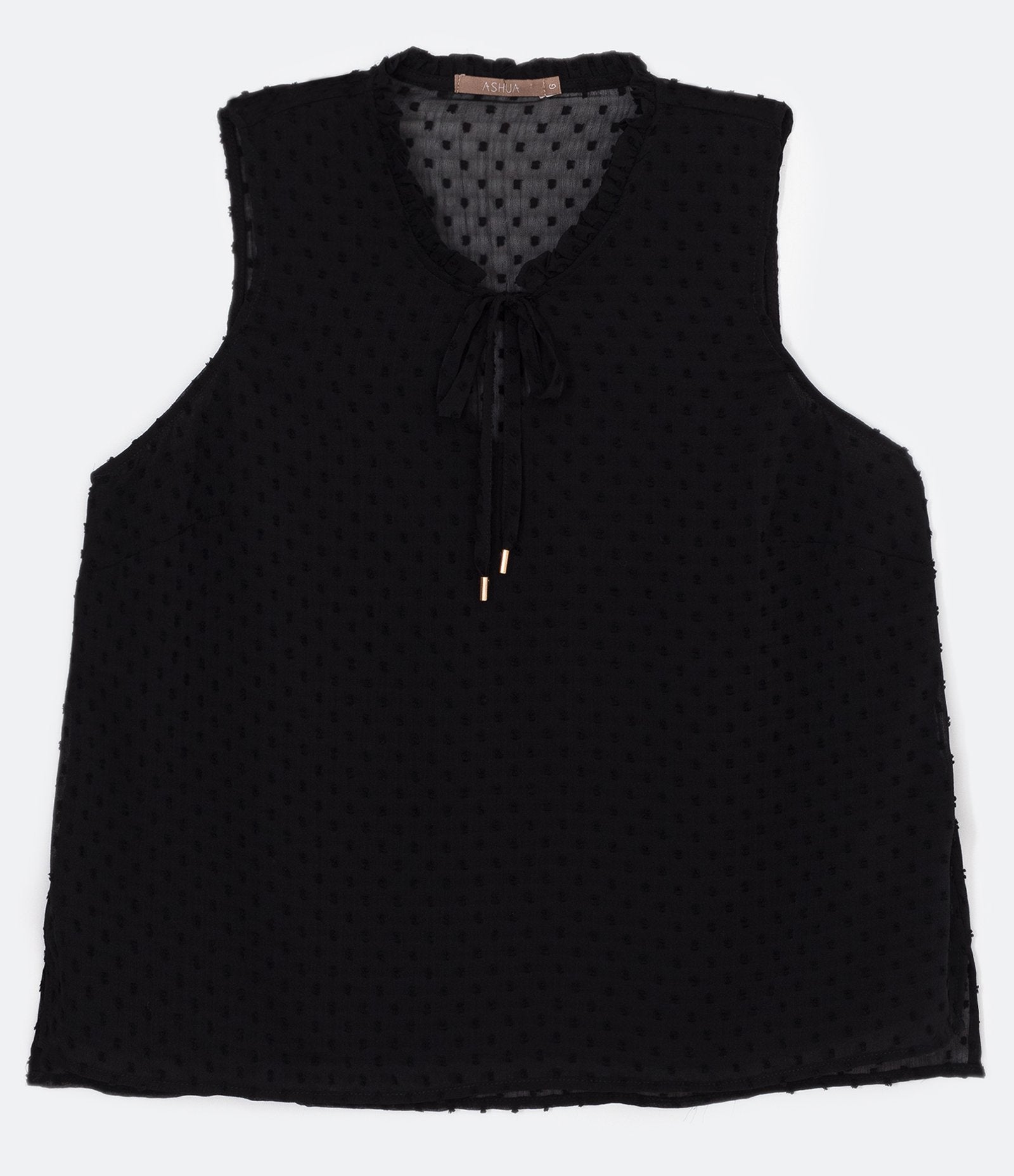 La camicetta senza maniche Ashua Curve Black con dettaglio cravatta in Curve & Plus Size è realizzata per celebrare le tue curve con stile e sicurezza. Ideale per ogni occasione, questo capo combina perfettamente comfort ed eleganza in un design lusinghiero.