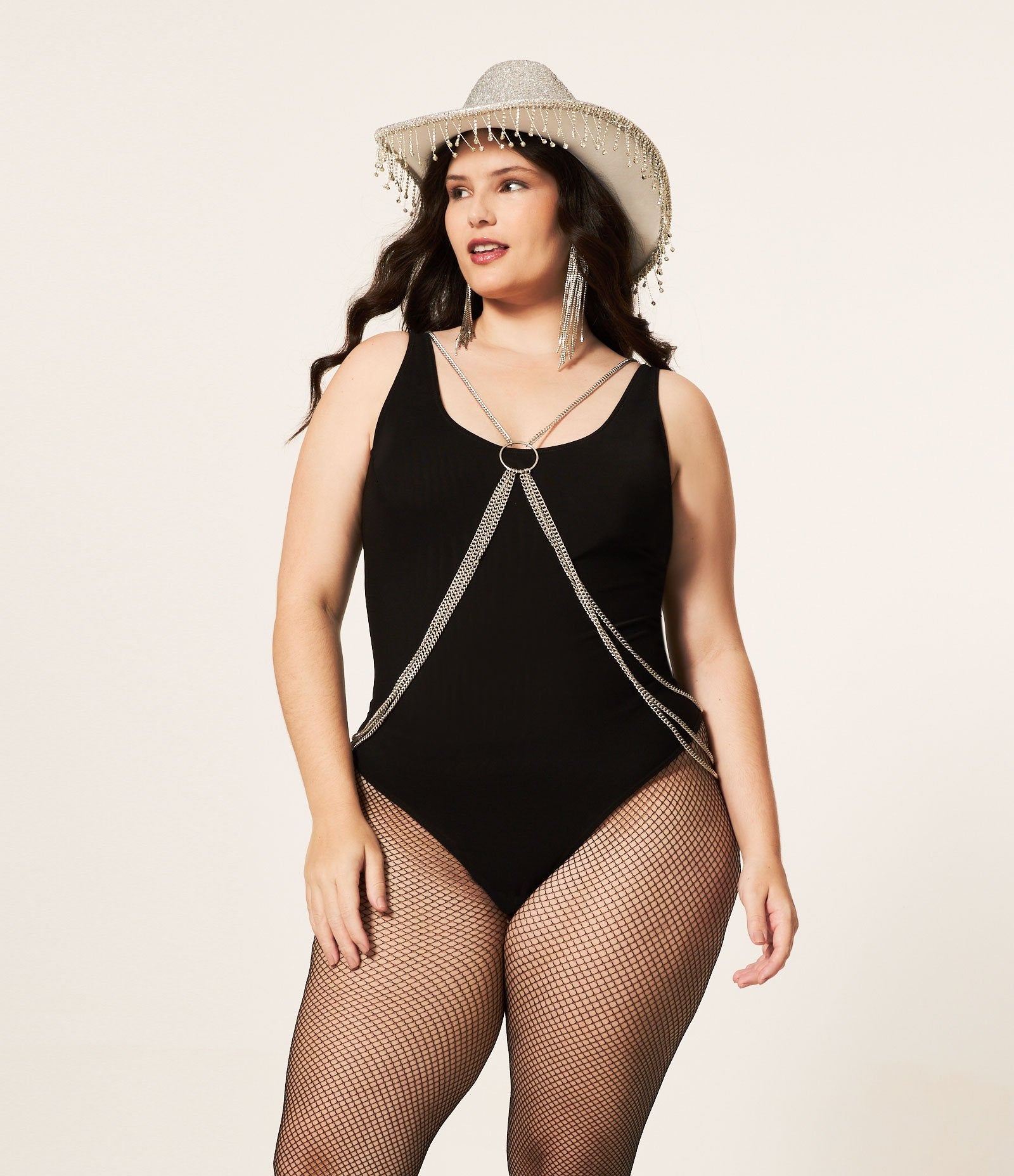 La Catena Corpo con Catene e Anelli in Metallo per Curve e Taglie Maggiori in Argento di Ashua Curve è realizzata per celebrare le curve con stile e sicurezza. Ideale per ogni occasione, questo pezzo combina perfettamente comfort ed eleganza in un design lusinghiero.
