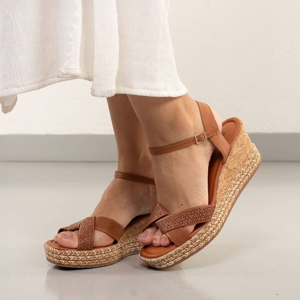 Sandalo da donna con zeppa e tacco alto in caramello di Bottero