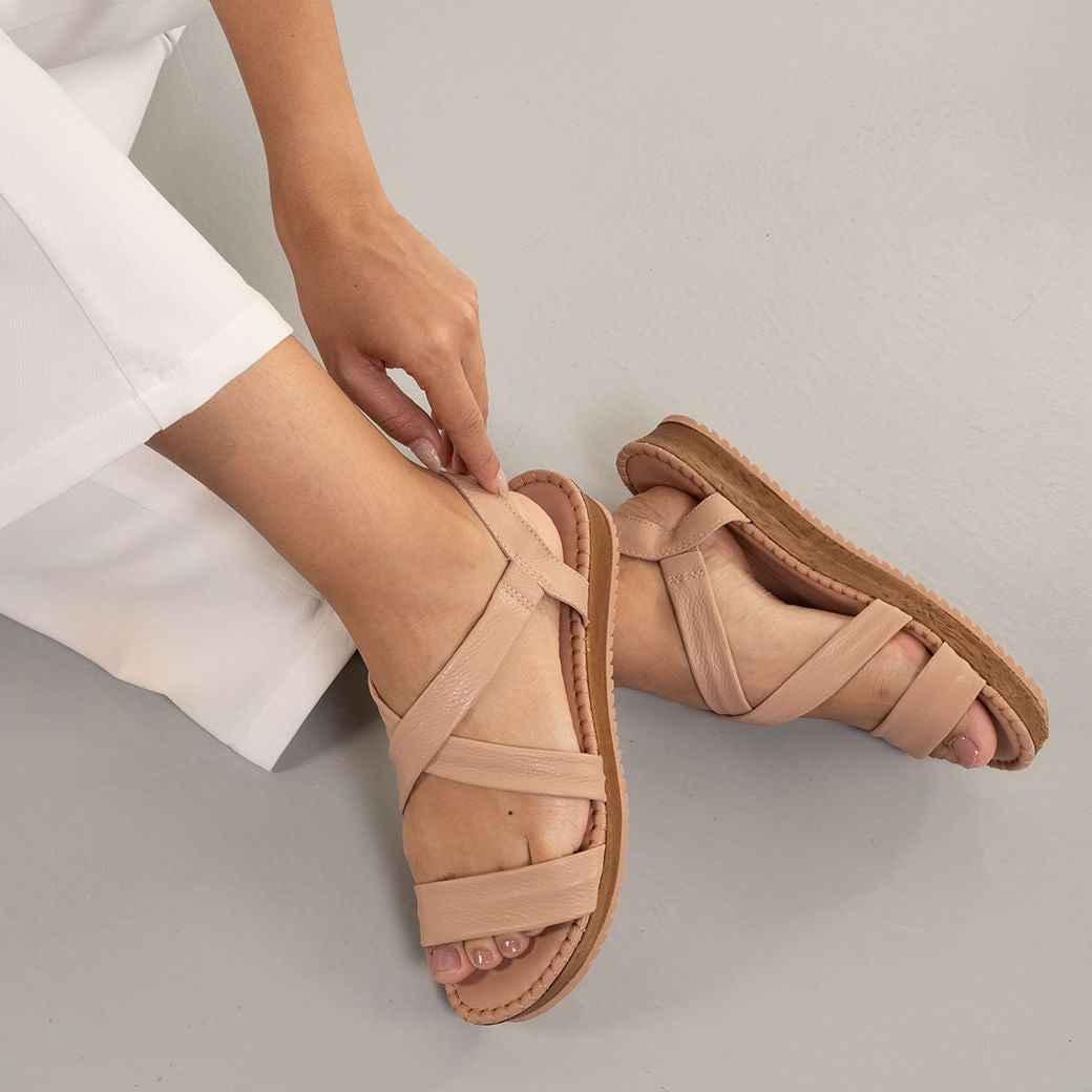 Sandali con zeppa da donna con cinturini elastici - Beige Bottero