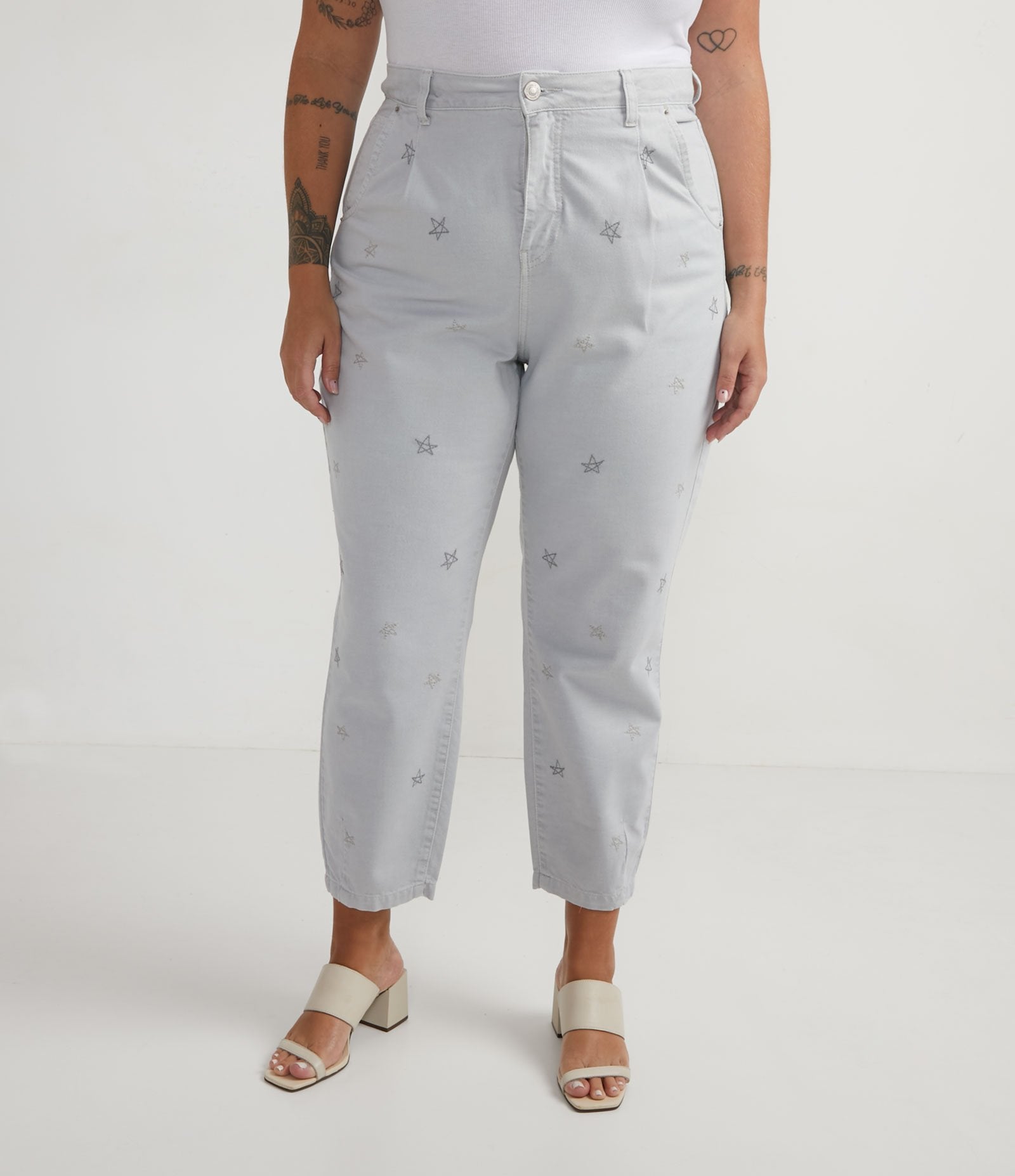 Jeans larghi con ricamo a stella, Curve e taglie forti, blu